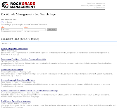 So what happens if the victim clicks on the other link on the page? They simply get redirected to a page on indeed.com (branded "RockGrade Management" / rockgrademanagement.com) which returns exactly the same results as if the victim had gone directly to indeed.com in the first place.